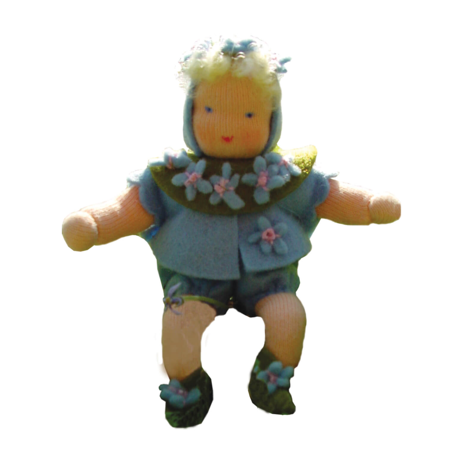 This doll is a part of the Flower Children doll kit series by De Witte Engel. The inspiration for the doll series came from the illutrations of Cicely Mary Barker and Elsa Beskow. The dolls are particularly decorative and a lovely addition to a seasonal table or a flower arrangement, or serve as a true artwork, for example in the living room. This kit contains only premium quality materials, including:n100 % woollen felt, Ökotex certified Truefeltn100 % Cotton Jersey, Ökotex certified De Witte Engel Doll Jerseyn100 % Washed WoolnnProvided with step by step Dutch, German and English instructions.nSize: 12 cmnStill needed: sewing threadnSome experience needed
