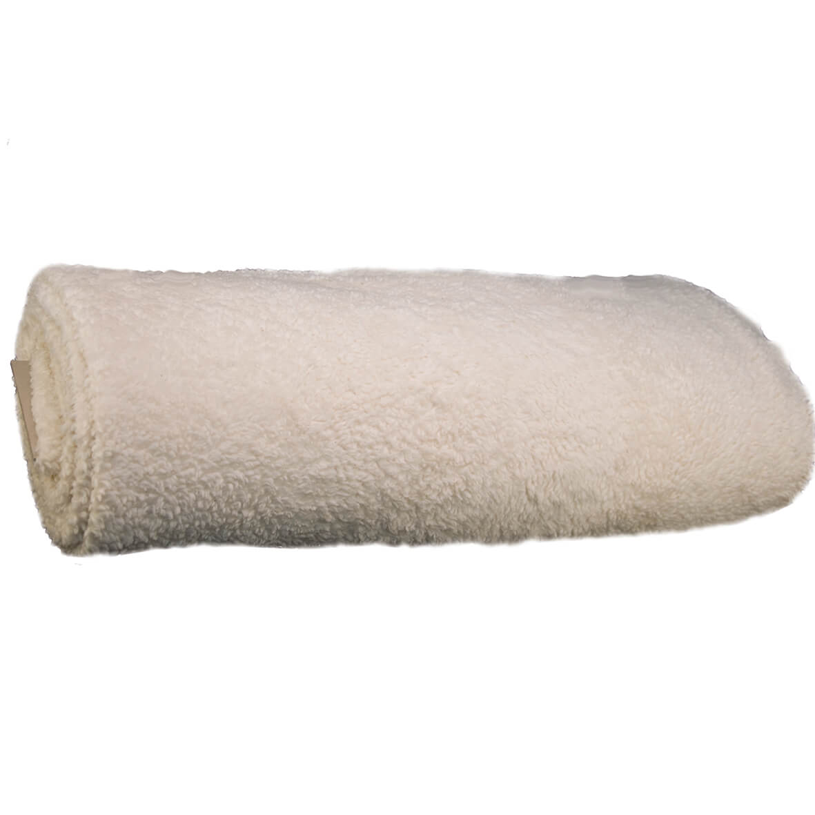 Bio Teddy Cotton. The fabric is washed and looks like a lamb coat. De fabric is 1.50 m wide and weighs 600 gram per running meter.