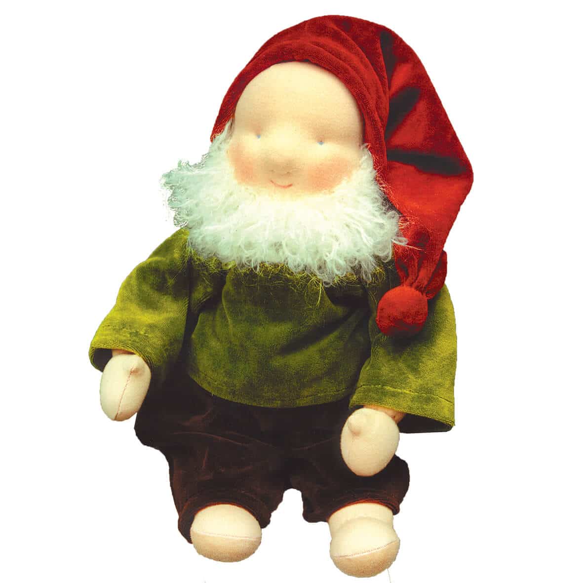 Deze stevige speelkabouter heeft een warme, wollige knuffelbaard. Hij is gemaakt van hoogwaardig 100% katoenen poppentricot dat speciaal veilig geproduceerd en geverfd is voor het maken van kinderspeelgoed. Doordat hij gevuld is met schapenwol, voelt de pop warm en levend aan. Tomte is een geweldig speelvriendje voor jongens en meisjes vanaf 4 jaar.