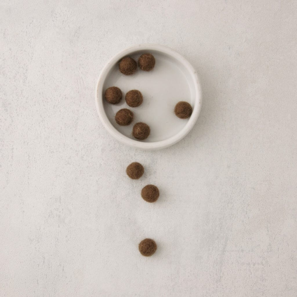 Handgemaakte viltballetjes van ongeveer 1 cm groot. Perfect voor het maken van kettingen, armbanden en bijvoorbeeld matten.