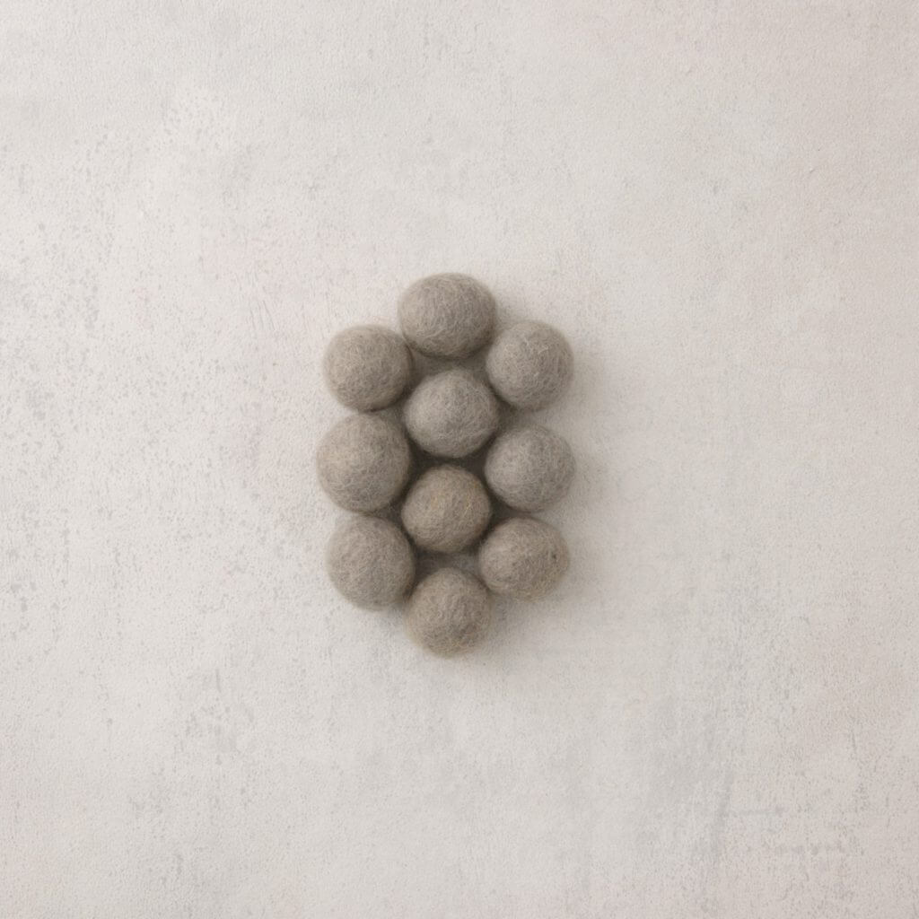 Deze viltballetjes worden gemaakt door een bedrijf die arme vrouwen een baan geeft. Doordat ze handgemaakt zijn kan de maat 10% varieren.